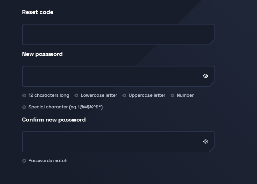 - Enter your new password and confirm it in the box below